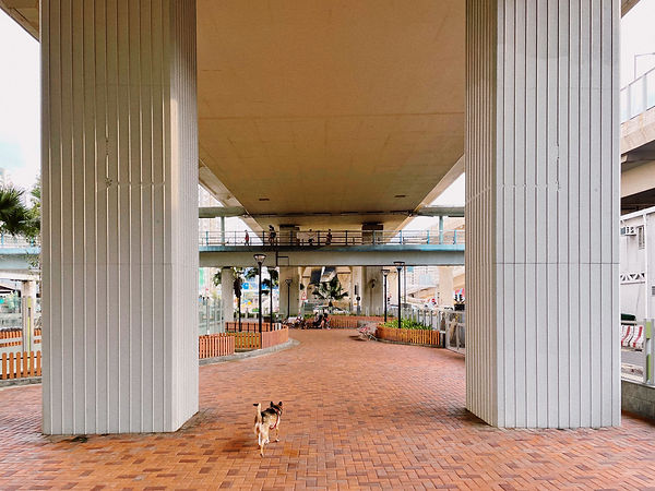 Waterloo Road was named to commemorate the United Kingdom’s victory in the Battle of Waterloo. From the late 19th century to 1961, the road was built in stages, ultimately becoming one of the main roads through the heart of Kowloon, connecting Hong Kong, Kowloon and East New Territories. The sitting-out area is located on the coastline of the former Yau Ma Tei Typhoon Shelter—hence the name Ferry Street. The area sits under the flyover at the junction of Ferry Street and Waterloo Road, near Yau Ma Tei Fruit Market. The sitting-out area is a long space that combines a pet park and a model car circuit. Given that both sides of the sitting-out area have busy traffic, the junction only has one entrance and exit at the junction.