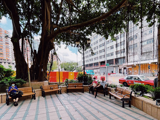 Kwun Tong used to be only the area around Cha Kwo Ling, until the government’s decision for new town development in the 1960s. A large number of factories and commercial buildings were built, and Kwun Tong’s town centre was moved to Yue Man Square, for its name has the meaning of ‘the prosperity of the people’. Within the context of Hong Kong’s declining industries in the 1980s and 1990s, the Land Development Corporation (the predecessor of the Urban Renewal Authority) announced the redevelopment of Kwun Tong’s town centre in 1989, which was finally completed in 2008. Yue Man Square rest garden has become the last old landmark in Kwun Tong town centre. The north–south paths of the garden are the only ways to reach the newly built public transport interchange, bringing a constant flow of visitors. In June 2021, however, the rest garden was removed, leaving only the original banyan trees on site. The rest garden is not only a bystander, witnessing the rise, development and decline of Kwun Tong’s town centre but also a protagonist, soon to be perished for urban renewal.