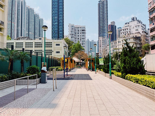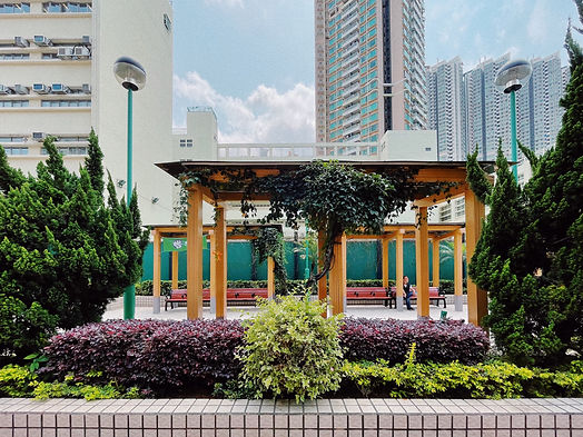 In Tai Kok Tsui and Sham Shui Po, numerous streets were named after plants, such as Cherry Street, Ash Street and Walnut Street. Sycamore Street was no different. However, Sycamore was referred to as ‘Flowerless-fruit Street’ in Chinese, as opposed to the Chinese cultural preference towards fertility. Thus, the street’s name was transliterated into Si-gor-mo, meaning ‘Poem-song-dance’ Street. The rest garden is located at the junction of Sycamore and Boundary Streets, and it is connected to the Sycamore Street playground, forming an ‘L’ shape. It is equipped with elderly fitness equipment and a children’s playground, as well as shade shelters and canopies covered in climbers.