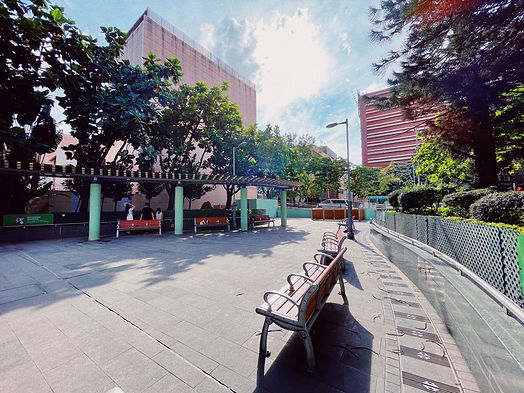 In the 1970s, with the completion of the Kowloon–Canton Railway Terminus and the Cross-Harbour Tunnel, the development potential of the neighbouring Hung Hom was ever-increasing. After the transfer of ownership of the Hong Kong and Whampoa Dock in early 1980s, Hung Hom was transformed into a residential development area. By late 1980s and early 1990s, Hung Hom Bay’s reclamation further pushed Hung Hom away from its previous role as an industrial, working-class community, slowly becoming a middle-class area. The predecessor of the Hung Ling Street Sitting-out Area was the Hung Hom Ferry Pier Public Bus Terminus before the reclamation. The opening of the Kowloon–Canton Railway transformed the bus terminal as a one-stop connection point for all ferry, train and bus passengers, until it followed the pier’s relocation in 1991. Currently, the sitting-out area is a pet park, with entrances on north and south ends. A wave-shaped pavilion runs through the middle, with rows of Norfolk Island pine and mango trees lined on east and west sides. However, the park appears to be relatively deserted due to nearby funeral homes and the reconstruction of Whampoa Street.